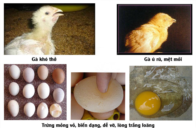Khi hệ thống sinh sản bị ảnh hưởng, ống dẫn trứng không được thông thoáng và năng suất sinh sản giảm. Lòng đỏ trứng tích tụ trong khoang bụng khiến trứng trắng hơn, nhiều nước và kém chất lượng.