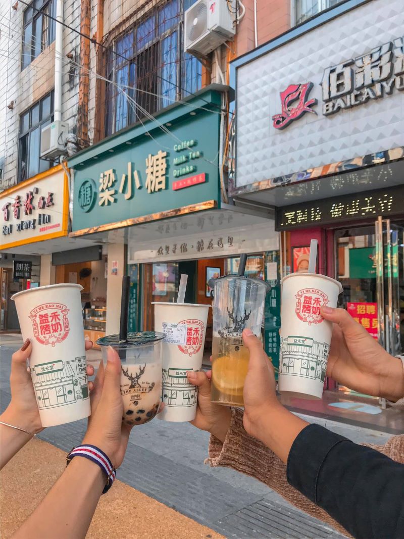 Bạn có thể dễ dàng bắt gặp rất nhiều thương hiệu trà sữa nổi tiếng trên đường phố Đông Hưng như Royaltea, The Alley,.. hay những quán trà sữa bình dân với hương vị ngọt ngào không thua kém các thương hiệu trong nước và quốc tế.