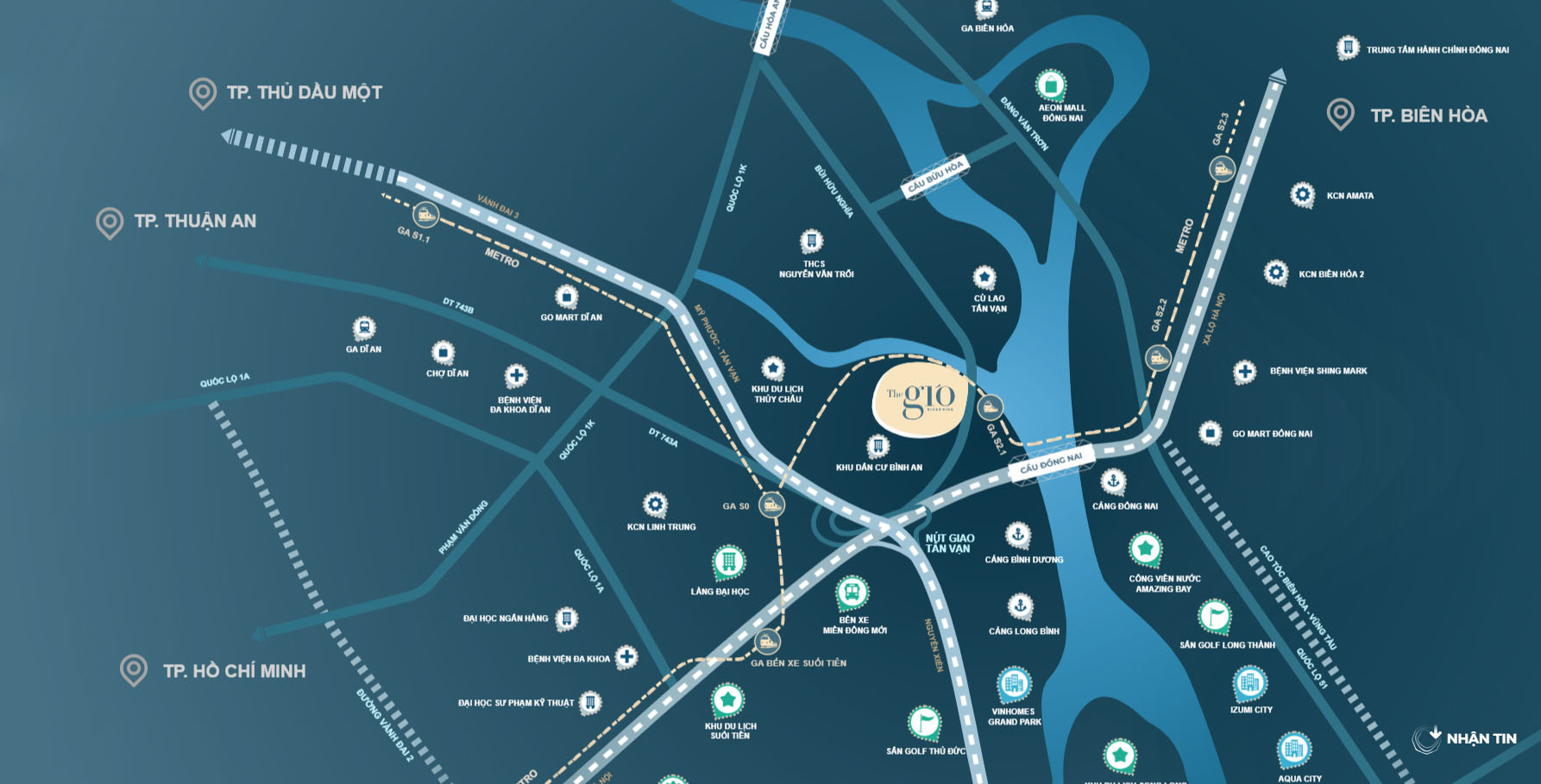 - 5 phút: Trung tâm hành chính Đồng Nai, Big C, Trung tâm y tế Tân Vạn, Chợ Ngãi Thắng, Bến xe Miền Đông mới, Ga Dĩ An…