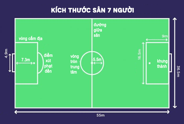 Kích thước mỗi khu vực trên sân bóng 7 người